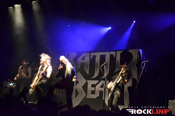 Očitno se je švedski vojni stroj za to turnejo odločil malo polepšati oder in s seboj povabil kar dve skupini z ženskim vokalom. Prvi so oder zavzeli finski Battle Beast. Mlada zasedba je leta 2010 zmagala na tekmovanju še neuveljavljenih skupin festivala Wacken, prihodnje leto pa na finskem izdala svoj prvi album 'Steel'. Še isto leto, jih je opazila založba Nuclear Blast, ki je poskrbela še za svetovno izdajo albuma. Leto 2012 je prineslo tudi menjavo pevca; skupino je zaradi družinskih težav zapustil Nitte Vallo, za mikrofonom pa ga je zamenjala svetlolasa Noora Louhimo. In kako se obnese ženski vokal v power metalu? Odlično! Če je bila ob začetku koncerta dvorana precej prazna, pa so jo s svojo glasbo dodobra napolnili že v nekaj minutah. Battle Beast igrajo zelo nalezljivo metal, ki gre hitro v ušesa in človeka ne pusti ravnodušnega. Čeprav tehnično ne najbolj zahtevna glasba, pa v svojem bitu ne skriva močnih vplivov svojih vzornikov od Iron Maiden in Judas Priest, pa do modernejših skupin, v kombinaciji s klaviaturami celo Sabatonov. Nastop je bil energetičen, navkljub zelo malem prostoru na odru – vsaka vojna zahteva žrtve in ker Sabaton s sabo vozijo bobnarski tank, se predskupini dobesedno drenjata na odru. Svoj polurni nastop so Finci izkoristili do maksimuma, pozitivna energija v dvorani pa je dodala še piko na i. Skupina, na katero bo v prihodnje še treba paziti!