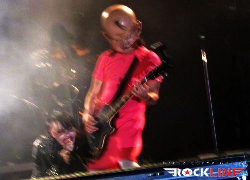 Nekaj minut preko desete zvečer se je v natrpani dvorani Marilyn s tremi kompanjoni le prikazal na odru. Občasnega koncertnega klaviaturista Chrisa Vrenno je pustil doma kar pomeni, da je kvartetu ostalo več honorarja obenem pa to, da je Manson podredil zvočno strukturo koncertom v prid kreacije hrupa, ki ga sproža in kreira v prvi vrsti električna kitara. Torej odrezav in neposredneje uperjen izraz novih koncertov. Zato ni čudilo da na koncertnem repertoarju ni bilo mogoče najti skladb prejšnjih dveh »pre-Born Villain« albumov. Zvestega pajdaša Twiggyja Ramireza je to pot postavil na pozicijo kitarista, medtem ko je na njegovi desni stal sveži član skupine in basist Fred Sablan. Slednji je leta 2010 zamenjal v postavi Andyja Gerolda. V začetku letošnjega leta, pa se je priključil postavi še bobnar Jason Sutter. Gre za izjemno izkušenega in prekaljenega mačka, ki je v karieri sodeloval s skupinami The Rembrandts, Smash Mouth, Soundgarden, New York Dolls in zelo kratek čas celo z AOR legendami Foreigner.