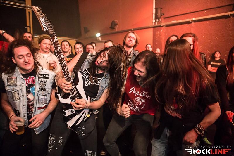 Tudi naslednji nastopajoči so stari znanci slovenskih odrov. Kanadčani Skull Fist so namreč pred tremi leti že nastopili v mariborski Pekarni, tisti koncert je bil hkrati tudi eden labodjih spevov tamkajšnje metalske scene, ki je v Mariboru zadnj leta praktično nična. A pustimo vsaj za sekundo štajerske probleme pri miru. Skull Fist so od tedaj doživeli kadrovski prepih, tako njihov edini originalni član ostaja komični velikan Jackie Slaughter, ki v svojih rokah drži vse vajeti kanadske tolpe, ki je tik pred pričetkom turneje izdala svoj drugi album »Chasing The Dream«. Skull Fist ostajajo novodobni promotorji starošolskega heavy / speed metala z vsebnostjo melodične komponente, sploh v vokalnem segmentu, kjer je Jackie v atmosferično najbolj podoživetih momentih nekajkrat spomnil na Joacima Cainsa (HammferFall), pa čeprav je instiktivno svetlobna leta bliže šoli Stevea Grimmetta (Grim Reaper). Kakršna muzika, takšna energija! Jackie in kompanija so se razleteli po odru in kinetiko publike, ki se je šele pri tretjem nastopu večera konkretno zgostila, uporabili sebi v prid. Izmenjajoče se predstava harmonij v tercah s podajajočimi soloti na eni in speed metalskimi jurišnicami na drugi strani so spomnili na dni, ko se je heavy metal še rojeval, vprašanje pa je, kakšen je sploh lahko prihodnji domet benda tipa Skull Fist, ki kaj več od prijetnega recikliranja v umetniškem smislu nima za pokazati.