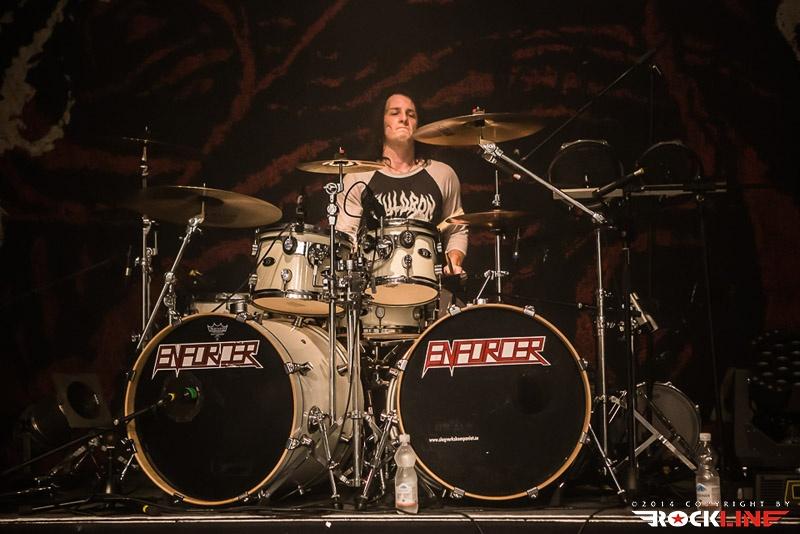 Kot osrednje ime večera so nastopili Enforcer. Švedi so svoj poslednji album »Death By Fire« izdali pri ugledni metalski založbi Nuclear Blast, kar je za skupino pomenil ogromen prebojni korak naprej, a kaže, kot da jih podzemna metalska javnost noče izpustiti iz svojih krempljev, tako so še naprej primorani igrati v manjših klubskih prostorih. Skull Fist so jim z najboljšo možno vajo za zbijanje kalorij zalučali rokavico, Enfrocer pa so izziv z nasmeškom sprejeli! Tudi sami namreč kot reinkarnacija heavy metalskih skupin iz začetka osemdesetih slovijo kot prava koncertna bomba. Čupanje z ramo ob rami, soliranja ob nabrušeni skorajda speed metalski podlagi in popolna podreditev odra so vrline, v katerih Enfrocer blestijo! Švedi so v peti prestavi drveli skozi material včeinoma iz zadnjih dveh plošč, ki kljub enovitnim trominutnim kompozicijam premore dovolj dinamike in riffovskih zasukov, da je publiko tudi pod težo karizmatične odrske predstave zajel vrtinec ugodja. Z igranem komada Countess Bathory ni izostal poklon kultnim Britancem Venom, prepevanje pododrja tudi pri refrenih avtorskih pesmi On The Loose, Take Me Out Of This Nightmare in Midnight Vice pa je dokazovalo, da se obiskovalci na kraju zločina niso znašli naključno. Odličen zvok akustično presežne dvorane je bil pika na i uigranemu nastopu, ker pa se krivulja Enforcerjev kljub podpore močne založbe v zadnjem letu še ni ukrivila bistveno navzgor se tudi pri njih samo od sebe zastavlja vprašanje, če se niso za vedno primorani sprijazniti z »udobjem« klubskih prostorov velikosti Orto bar. Minus nastopa je bila kratka časovnica - izgledalo je, kot da je Švedom že po slabi uri pošla vsa sapa!