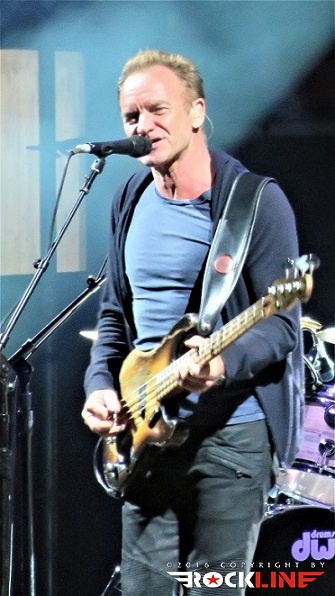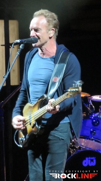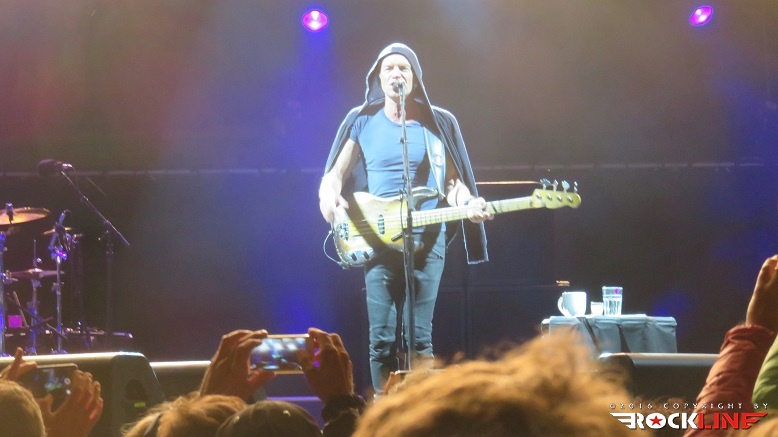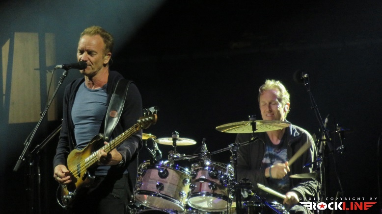 Kljub temu da britanski glasbenik šteje že častitljivih 65 let, je njegova odrska drža izredna! Atletsko izklesano telo priča o dobri telesni kondiciji, nekoliko nižjega vokalnega registra pa mu pač ne gre zameriti. Unikatna vokalna barva je namreč tista prepoznavna karakteristika njegove pevske identitete, ki je ne more zgrešiti niti povprečni glasbeni ljubitelj. V refrenih so Stingu vokalno podporo dajali Joe Sumner in njegova skupina The Last Bandoleros, tudi oni pa so bili pri hitih kot sta Message in a Bottle ter Walking on the Moon preglašeni s strani okoli 7000 prisotnih grl. Sting je med skladbami s publiko prijazno komuniciral, skorajda v večini primerov v italijanščini. Skozi večer je ves čas prilival olje na ogenj, kar je med The Police hitom Roxanne z njihovega prvenca rezultiralo z vsesplošnim stampedom iz sedišč tik pod oder v središče dogajanja. Spremljevalna skupina, ki so jo sestavljali kitarist Dominic Miller, bobnar Josh Freese in Dominicov sin, prav tako na kitarist, Rufus, je skladbo Roxanne začinila s tematskim izletom v še starejši zimzelen Ain't No Sunshine (original Bill Withers), predno so se po slabi poldrugi uri glasbeniki prvič poslovili z odra.
