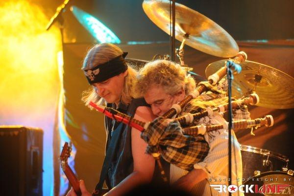 Nazareth so se očitno naveličali izvajati skladbe iz novega albuma »Big Dogz« (Edel Records, 2011), zato je to pot njihova set lista izzvenela povsem v klasičnem rockovskem okolju. Že takoj na drugo mesto so postavili izvedbo fenomenalne skladbe Telegram! Znamenito vročekrvno kitarsko frazo stopnjuje zasedba skozi pravi dramatični vihar, v katerem najstarejši še živeči rocker, ki je davno tega požrl cirkularno žago, ta pa mu je obstala za vekomaj v grlu – pevec Dan McCafferty, presune s svojo vokalno posebnostjo, ko njegovo znamenita vokalna interpretacija leze pod kožo, kot triljonska invazija mravljincev. Dan McCafferty, mož za katerega mnogokrat pravim, da je živeče utelešenje moške verzije Janis Joplin, ko s svojim frenetičnim kričanjem nasaja hudiča na kol, je še vedno žariščna točka vseh žlahtnih prvin in glasbeno izpovednih posebnosti skupine. V mirnih točkah, kot sta Dream On in zaključna Love Hurts, je sicer njegov vokal pokazal nekaj skrhanosti, kar pa mu gre odpustiti. Pride pač z leti. McCafferty jih ne šteje več rosnih dvajset, čeprav deluje na odru razposajeno, kot mladoletni žrebec. Njegov vselej zanesljivi tovariš Pete Agnew, je tudi to pot nudil izjemno podporo s spremljevalnim vokalom v družbi krepostnega sina, sicer bobnarja skupine Nazareth Lee-ja, medtem ko je Murrison (temu se k stasu prikradlo kar nekaj odvečnih kilogramčkov zadnje leto) odpihnil dvorano z izredno vživeto odrsko predstavo v kateri je žvrgolela njegova kitara najbolj pristno izpoved rock n' rolla. Tu je nadobvezna klasika Hair Of the Dog, zimzelen in vsakokratni vrhunec slehernega Nazareth šova, tudi v letu 2012. S »kravjim zvoncem« podprta koketno ritmična odisejada, kjer poprime McCafferty obvezno za škotske dude je naznanila, da se nastop bliža ne le k vrhuncu, pač pa tudi h koncu regularnega dela.