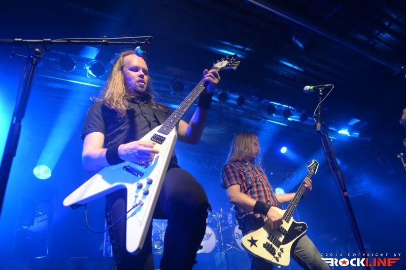 Drugi po vrsti so se bavarski publiki predstavili Unisonic, kljub komaj nekajletni kilometrini v metalskih vrstah že dobro prepoznaven kvintet. Unisonic sestojijo iz starih mačkov germanske težkorockerske srenje, zato jih je narod že ob izdaji samonaslovljenega prvenca pred dvemi leti vzel za svoje. A karavana je šla dalje in Unisonic so nove vroče žezlo skovali v letošnjem letu, ko so izdali svoj drugi album »Light of Down« (recenzija tukaj). Po nasnetem intru so se člani benda razporedili po odru, za pravo eksplozijo med prvimi vrstami ob deveti uri zvečer že nabitega kluba Backstage pa je poskrbel prihod prvega slavčka Michaela Kiskeja, katerega vokal je v drugi polovici osemdesetih postal nesmrten kot del kultnih Helloween klasik. Unisonic ustvarjajo v polju spevnega hard rocka in heavy metala z občasnim plasmajem dvojne bobnarske bas pedalke, energična kombinacija je uvodoma udarila že s skladbo For The Kingdom. Tisočglava množica je med premorom začela vzklikati »Kiske, Kiske«, kar je še podžgalo frontmanov nastop, ki se je v refrenu komada Exceptional izkazal z visokoletečim vokalnim registrom. Unisonic so delovali kot dobro podmazana koncertna mašinerija, ki ji kljub profesionalnemu pristopu ni tuja niti zajebancija, tako je vedno nasmejani kitarist Kai Hansen sredi nastopa Kiskeju podstavil nogo, a se ta ni ujel na limanice. Prav kitarska naveza Hansen / Many Meyer (slednjega sem v dotičnem klubu pred nekaj meseci spremljal že kot kitarista legendarnih Krokusov) skrbi za visokooktanske inštrumentalne pasaže s spretno umeščenimi nalezljivimi refreni, vrhunci Unisonic ustvarjanja. Veseli tudi dejstvo, da repertoar kvinteta po vsega dveh izdanih albumih sestavlja že skoraj izključno avtorska glasba, med katero so pred zaključkom umestili še Helloween hitič I Want Out. V peti prestavi brez ročne zavore, zatorej je v nasprotju z dandanašnjo dolgočasno Helloween izvedbo zadel žebljiček na glavico in predstavljal popoln miselni odklop pred vrhuncem večera. Vrhuncem? Za marsikoga so bili to že Unisonic!