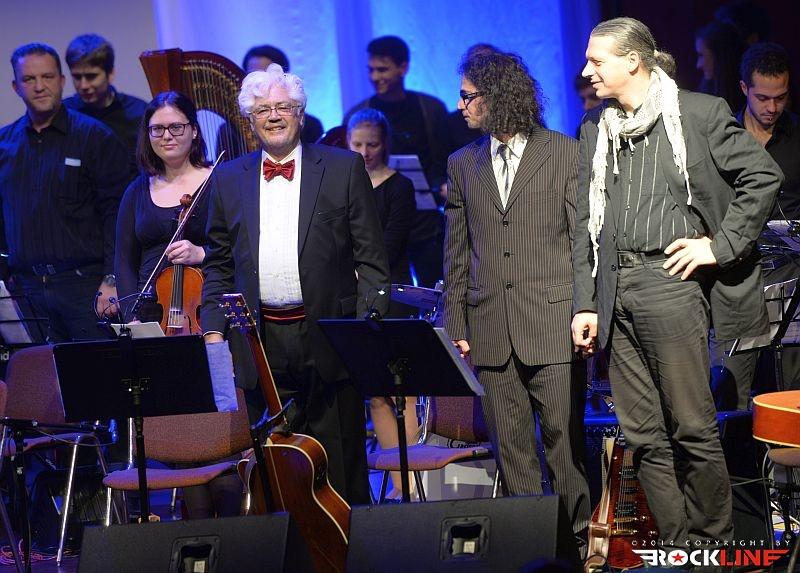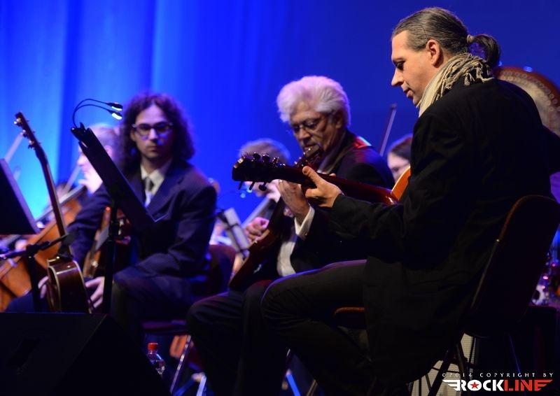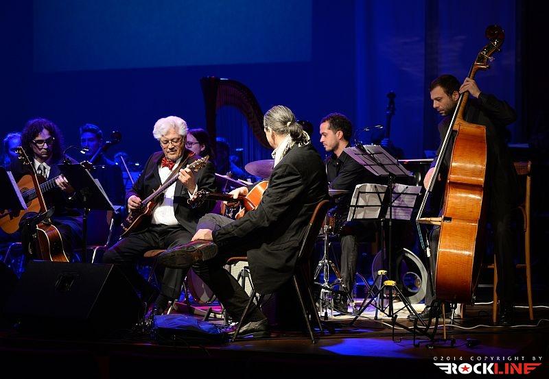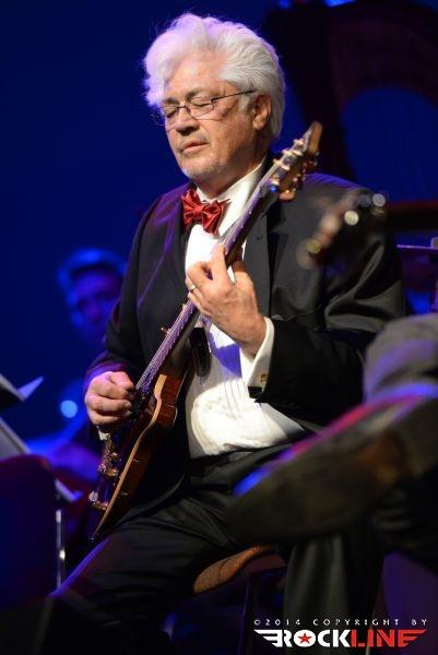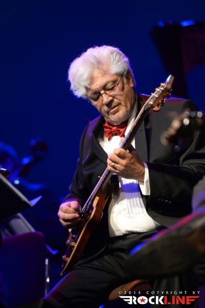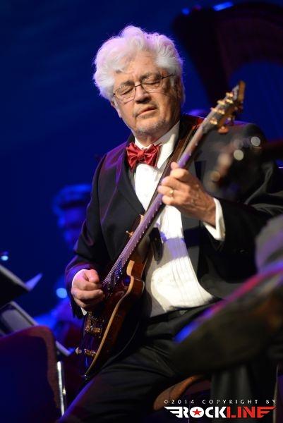 Na odru velike dvorane kulturnega doma v Novi Gorici je stal torej »orjaški« orkester, na skrajni desni pa je ostalo v ospredju nekaj prostora, ki ga je zasedel mini jazz rock fusion band treh kitaristov, bobnov in kontrabasa. Zahteven zalogaj! Človek bi si želel malo bolj polne dvorane, navkljub temu pa je bila ta izpolnjena z veliko srčnostjo. Poslušalci so se kaj hitro zlili s spektakularno predstavo, v kateri smo v začetku kar dolgo čakali, na prvi Coryellov jazz ekspoze, potem ko je uvodna beseda šova v celoti in izključno pripadla orkestru.