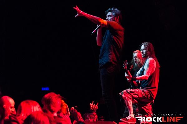 Ostali so le še s Suicide Silence, ki so po intru M.A.L. udarili s skladbo Inherit The Crown z zadnjega albuma You Can't Stop Me (recenzija TUKAJ). Na preizkušnji je bil seveda vokalist Hernan »Eddie« Hermida (bivši pevec All Shall Perish), ki je stopil v čevlje pokojnega Mitch Luckerja. A Hermida ni Mitch, njegov glas je drugačen, tudi ne skuša imitirati Luckerja. Gre za drugega človeka, ki je dal skupini neki novi začetek. Vsekakor pa se je hitro pokazalo, da gre za odličnega frontmena, ki ima več kot desetletje izkušenj. Program zna dobro povezovati, njegovi cinični komentarji pa so nasmejali marsikoga. Hermida se je med drugim tudi pošalil iz svoje bivše zasedbe na sledeč način: »Če želite videti All Shall Perish, pojdite v Kalifornijo ali pa si jih poglejte na YouTube«.