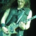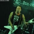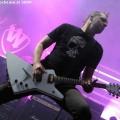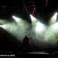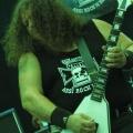 Darkness of Christ, uvodna tema iz albuma "God Hates Us All" (2001) je že vse od izdaje albuma "tape intro" Slayer nastopov. Oder se je zavil v meglo, v zraku se je zavohalo morbidno vzdušje, ki je zelo posrečeno ujet v intru, po minuti in pol pričakovanja in razbijanja srca pa se je zgodilo! Kitarska trojica pridrvi na oder in začne z logičnim nadaljevanjem - Disciple, še eno skladbo iz že omenjenega albuma. Že prvi težak riff je v zrak pognal zbrano množico, ki je bila največja na celotnem festivalu, za prvimi vrstami pa se je začel boj za preživetje, poimenovan tudi moshpit. Kako nepozabna izkušnja je na odru gledati kitarsko dvojico King & Hanneman! Legendarni "dvojček", ki skupaj deluje že skoraj 30 let, je prisotnim odčital pošteno lekcijo uigranosti in nezmotljivosti - glede na stalno koncertiranje je to prav logičen pojav. Strahvzbujajoča zunanjost Kerryja Kinga in njegov ledenohladen odnos do publike, na katero se požvižga in ji tekom koncerta ne privošči niti pogleda, sta dve značilnosti, ki pri Kerryju najbolj izstopata. Kljub njegovi groteskno strašljivi odpravi je bilo hitro opaziti, da pri solažah ostaja nesiguren, celo smešen. Pri Jeffu Hannemanu imam občutek, da kljub njegovi pomembni vlogi v skupini na odru uživa v igranju v senci, v drugem planu, saj ga s svojo osebnostjo mnogokrat King povsem zasenči. Pogled na Dave-a Lombarda je zakrival ogromen bobnarski set, tako da je bilo opazovanje dogajanja za bobni malce otežkočeno, a Dave se ni dal motiti. Znova je dokazal, iz kakšnega testa je! Že rahlo sivemu Tomu Arayi, ki si poleg z igranjem bas kitare kruh skuži kot vokalist, leta nezadržno tečejo, kar se kaže v vse večjem naporu pri vokalnih nalogah - največji dokaz je Angel of Death, pri katerem začetnega visokega krika sploh ne izvede, pač pa z nasmeškom na ustih le-to prepusti publiki. Večino časa se Araya nahaja v srednjih vokalnih vodah, kar mu ne dela nobenih težav, medtem ko pri (redkih) visokih krikih svoj glas priredi starosti - za stopničko ali dve ga zniža. Sicer pa gre za izjemnega frontmana! Publiko vseskozi drži v šahu, njegov nastop je prepričljiv, publika hlasta za njegovimi izračenmi besedami, nasploh je edini od četverice, ki sploh (v kakršnikoli obliki že) komunicira z občinstvom. Preostala trojica se ne da motiti. Niti pod razno.