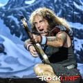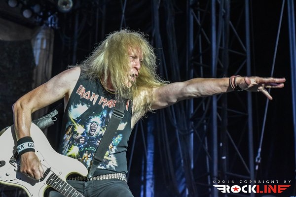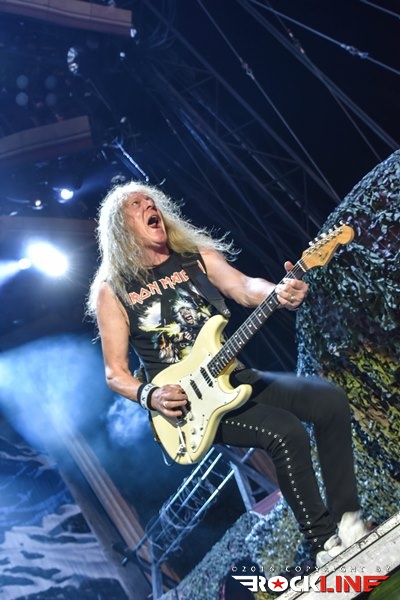 Sonce nad Trstom je počasi zahajalo in največji tržaški trg je eksplodiral, ko se je iz zvočnikov oglasila UFO klasika Doctor Doctor, takoj zatem pa še prodorni glas buldoga druge svetovne vojne, britanskega premierja Winstona Churchilla, ki je jasno napovedal himno zračnim junakov Bitke za Britanijo in enega najbolj udarnih in prepoznavnih komadov Devic, Aces High. Med publiko je završalo, ko je na oder pritekla legendarna šesterka z Dickinsonom, pokritim s pilotsko čepico na čelu, ki je v svojem elementu skočil visoko pred sprednje monitorje in s prvimi verzi jasno nakazal, da v tako dobri vokalni formi ni bil že lep čas. Iron Maiden so že med prvimi sekundami tržaškega nastopa poskrbeli za naravnost epski razgled, ko se je iznad Nickove flak baterije nad bend dvignil gromozanski Supermarine Spitfire z vrtečim se propelerjem vred! Železne device so to pot po dolgem času z izborom komadov pripravile nekaj nepričakovanih in čudovitih presenečenj, prvo že na samem začetku, ko so ostali v tematskih vodah druge svetovne vojne z Where Eagles Dare. Komada, ki ga je navdihnil istoimenski roman po katerem je bila leta 1977 posneta klasika z Richardom Burtonom in Clintom Eastwoodom, niso Iron Maiden igrali vse od turneje Eddie Rips Up World leta 2005. Kljub temu je bend od kultnega Nickovega uvodnega rollinga, s katerim se je davnega 1983. prvič predstavil fenom Devic, zvenel brezhibno, a hkrati organsko in naravnost magično, pa je bilo to šele začetek drugega tržaškega druženja z Britanci. Rockerska in nekoliko prežvečena 2 Minutes to Midnight je na noge dvignila italijansko publiko željno največjih hitov, za vnovično presenečenje pa poskrbela devet minutna mojstrovina The Clansman, eden redkih svetlečih trenutkov albuma Virtual XI in kocinedvigajoč je bil trenutek, ko je refren »Freedom!« odmeval iz deset tisočih ust. Predstava gospodov, ki nosijo že šest križov (z izjemo Brucea, ki bo šestdesetko srečal čez dobra dva tedna), najstarejši Nicko McBrain pa jih šteje že kar 66, je milo rečeno osupljiva. Toliko dinamike in gibanja na odru je videti od redkokaterega benda, a je temu treba dodati še briljantno predstavo prav vsakega od Devičnikov. Rezultat je lahko le spektakel kot ga znajo ponuditi le Iron Maiden in ki nahrani tako oči in ušesa, kot tudi dušo in srce.