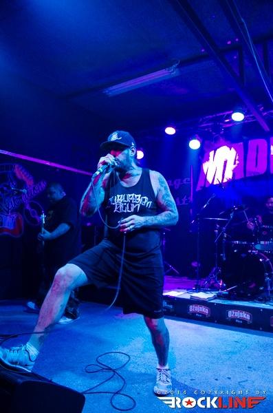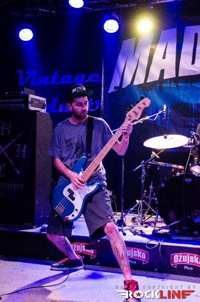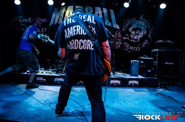 Malo pred enajsto zvečer pa se je prizorišče zatemnilo in skozi uvod so na oder stopili Madball. Prostor se je napolnil do zadnjega kotička. Kvartet vzdržuje od leta 2011 dalje čvrsto postavo, ki ji poveljuje neumorni frontman Freddy Cricien, ob pravzaprav nič manjši ikoni benda »nezamenljivo« karizmatičnem širokostasem basistu Jorge Guerri, ki jo zapolnjujeta še kitarist Bryan Daniels ter bobnar Mike Justian. Od prvega takta pa do zadnjega riffa je bend skozi uro in deset minut starošolsko izdelanega Madball šova širokogrudno hranil publiko z nebrzdano energijo visoko-oktanske kanonade. Freddy je znova preboksal in prebrcal celotno odrsko ozračje, medtem so podivjani fani neumorno lezli na oder ter z monitorjev povratno pljuskali v morje orjaških valov razburkanega občinstva! Klubska dvorana je kaj kmalu spominjala na pobesneli panj sršenov. Lep kos ljudi je moralo ostati v predprostoru v katerem se nahaja glavi šank, saj je bilo prag klubske dvorane nemogoče prestopiti! Bend ni postregel tega večera z najboljšim zvokom. Kitarski riffi so zveneli pridušeno, tudi Freddyjeva dnevna vokalna forma je že videla boljše čase.